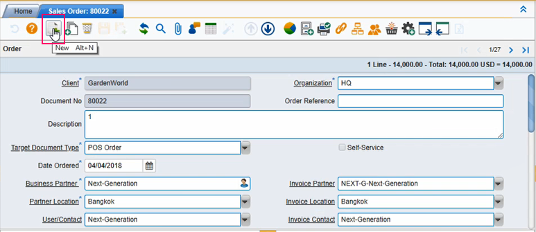กดเพิ่มเอกสารใหม่เพื่อที่จะทำการเลือก Business Partner ที่จะทำการขาย